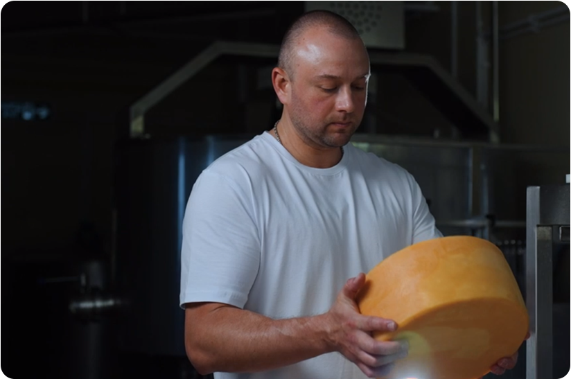 Для сыра необходимы особые условия созревания, от этого зависит его вкус. В наших камерах установлена современная система очистки воздуха, контроля температуры и влажности.